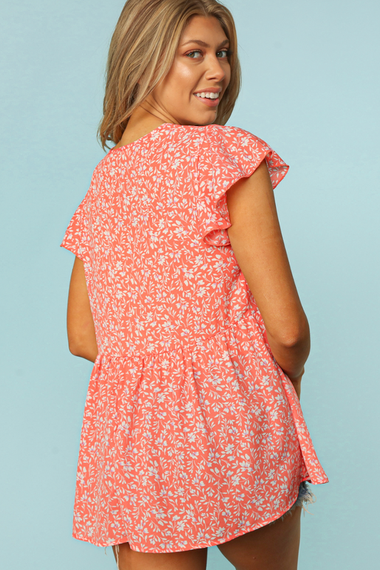 Waffle Knit Color Block Button Front Balloon Sleeve Top