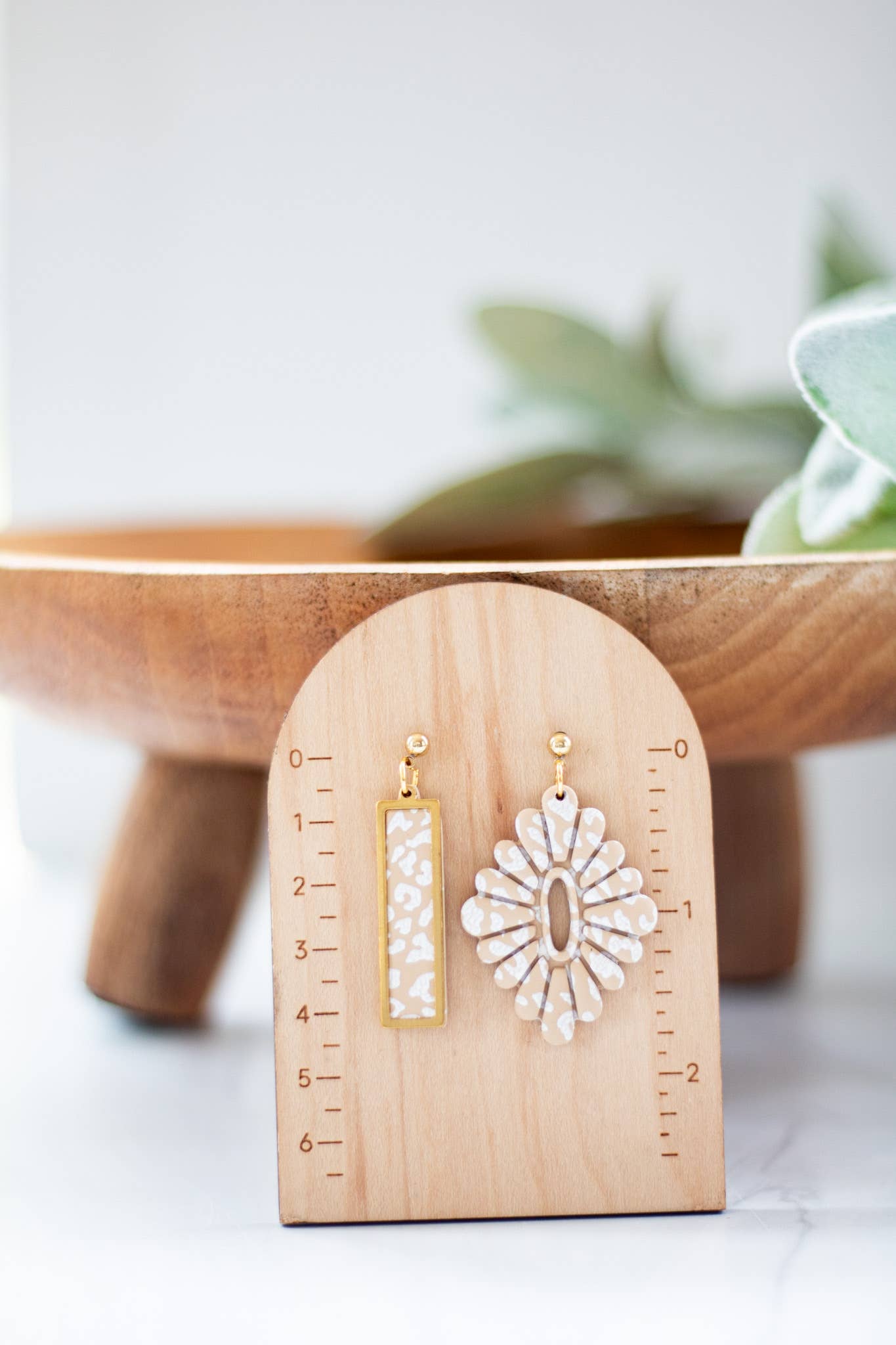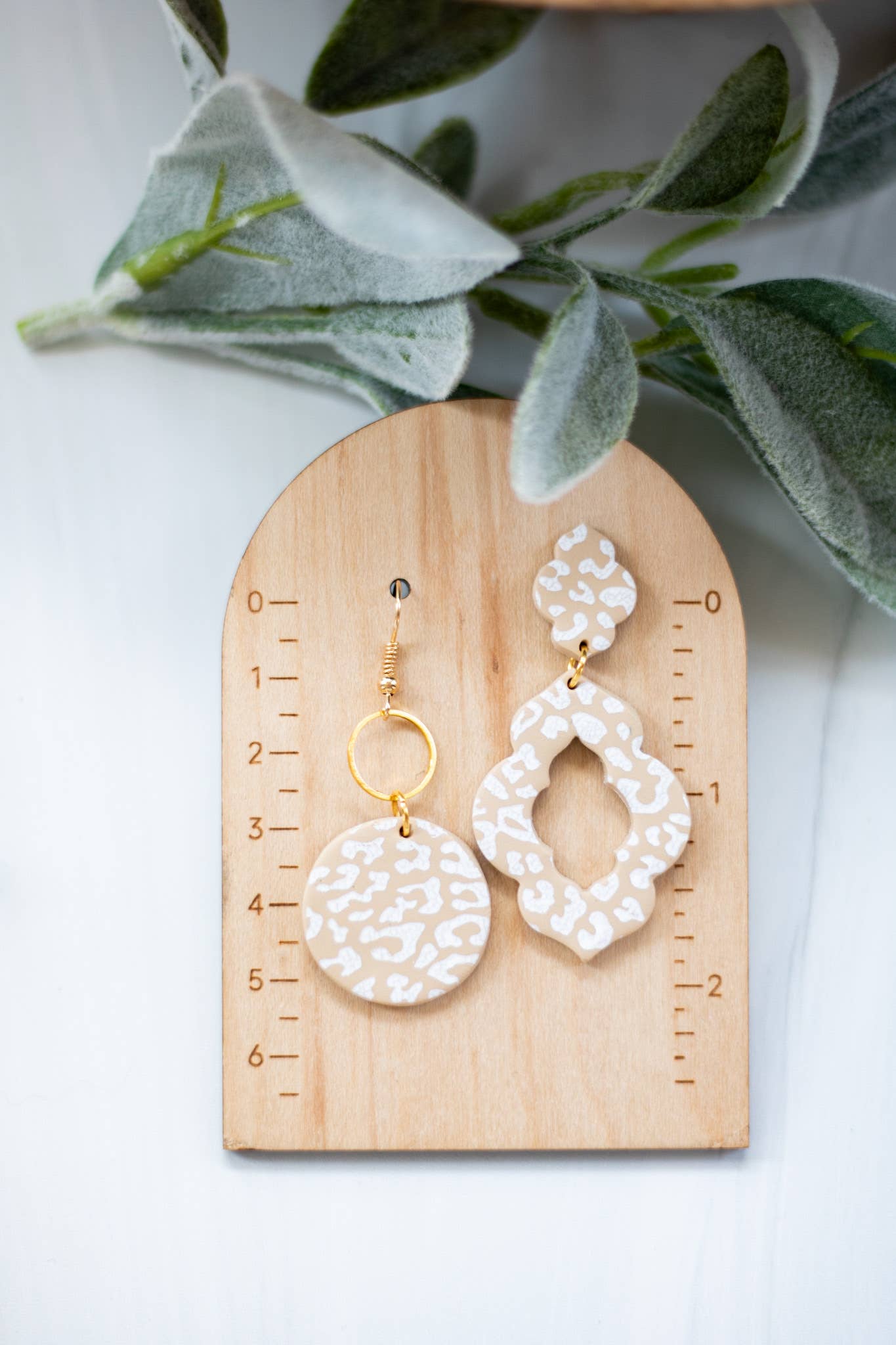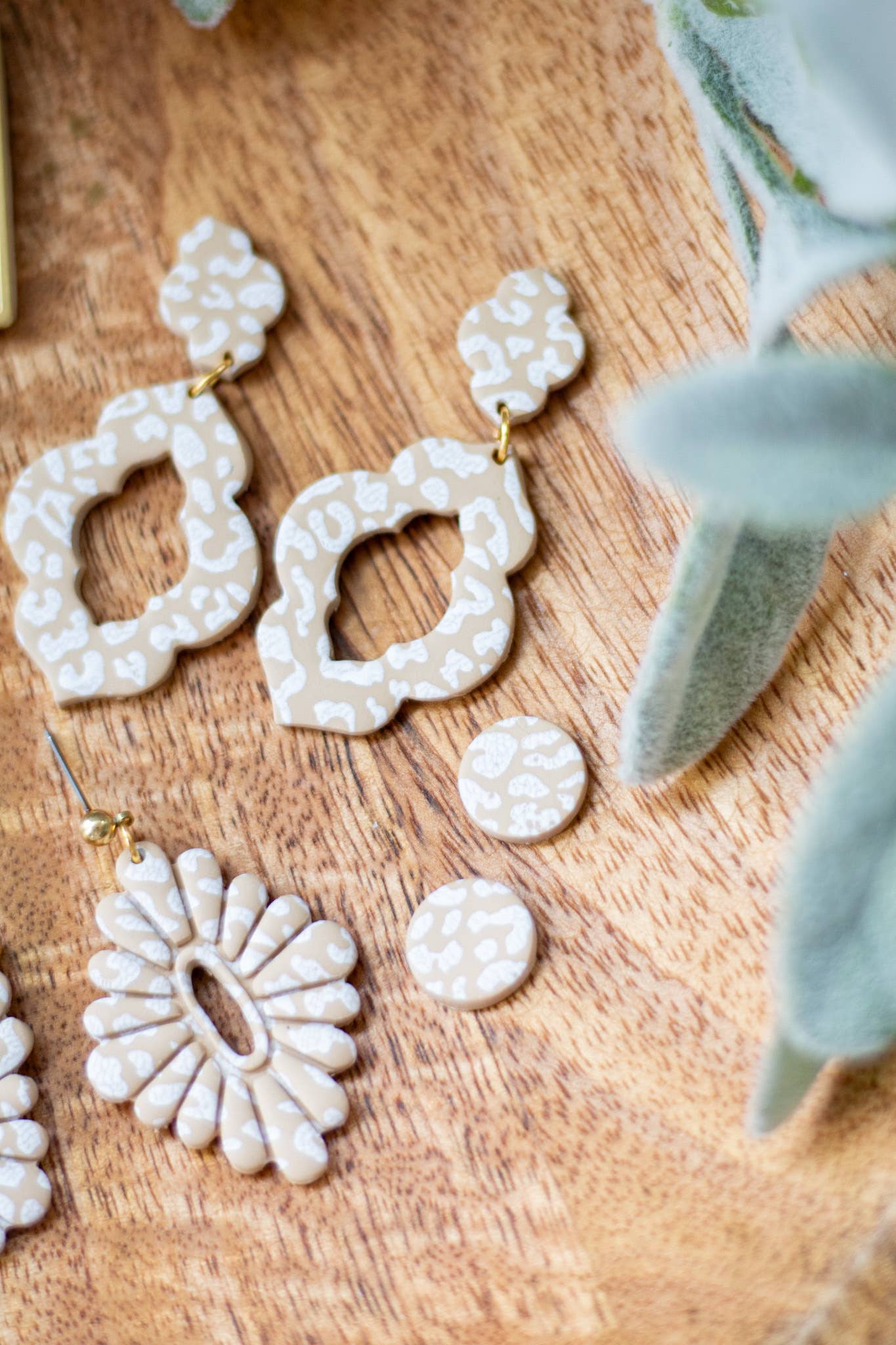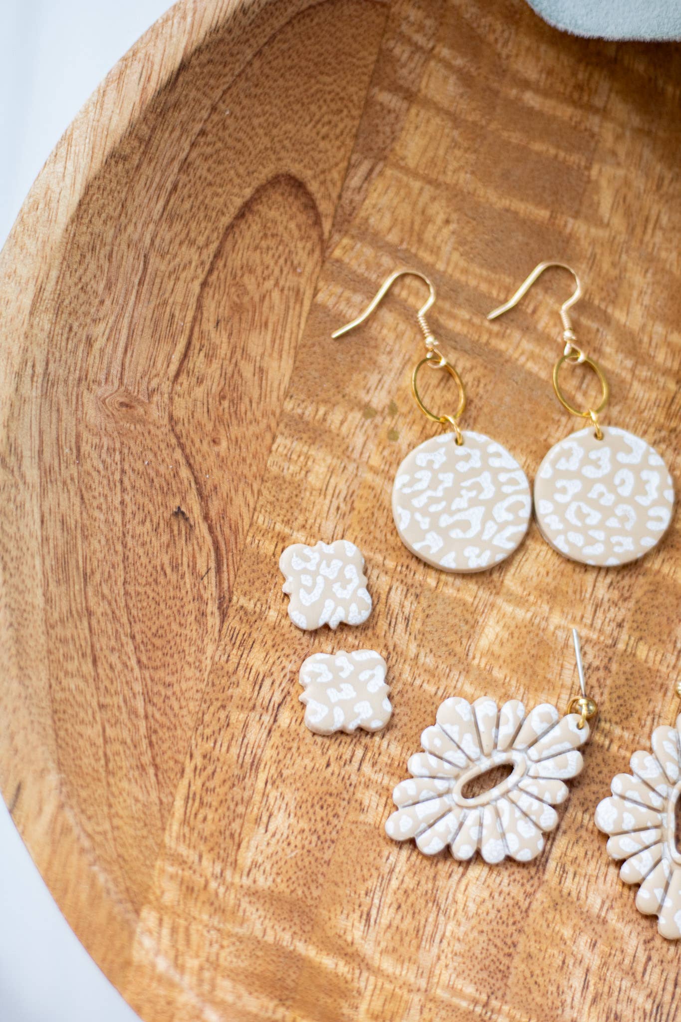Experience the elegance of the Champagne Leopard Collection from EJ Clay Co. This dazzling jewelry set, characterized by its dangle hoop earrings, is designed to bring out your wild side in the most sophisticated way. Crafted by a passionate team in Knoxville, TN, these lightweight pieces are perfect for sensitive ears. Embrace the handmade quality and support a thriving small business with your purchase. Enjoy the charm of these unique accessories that are packed with care to ensure safe delivery.