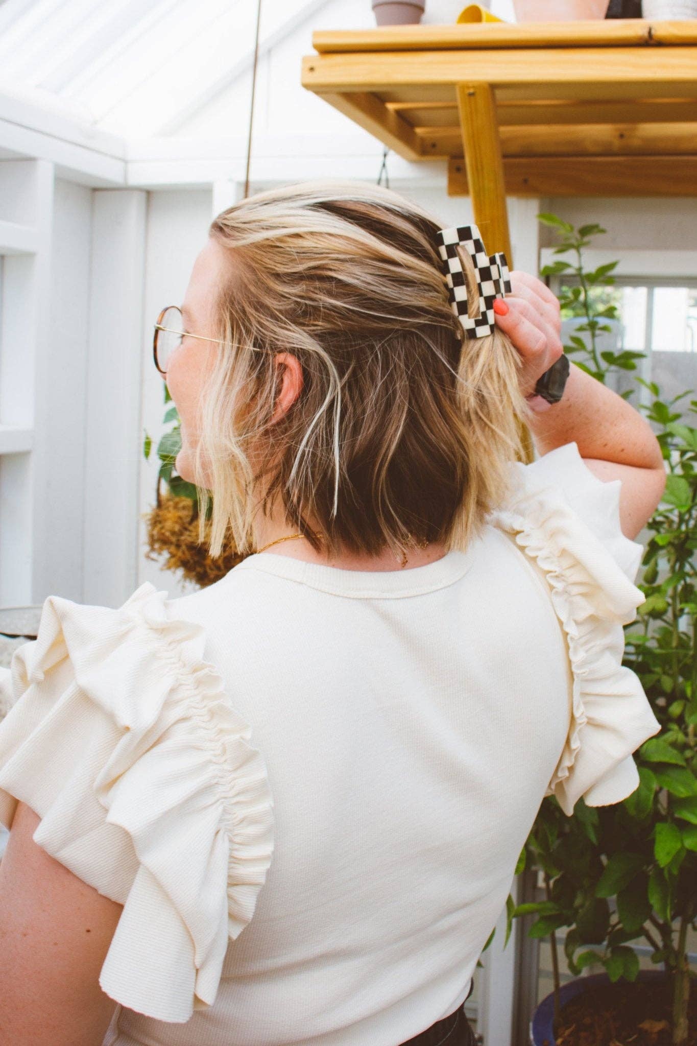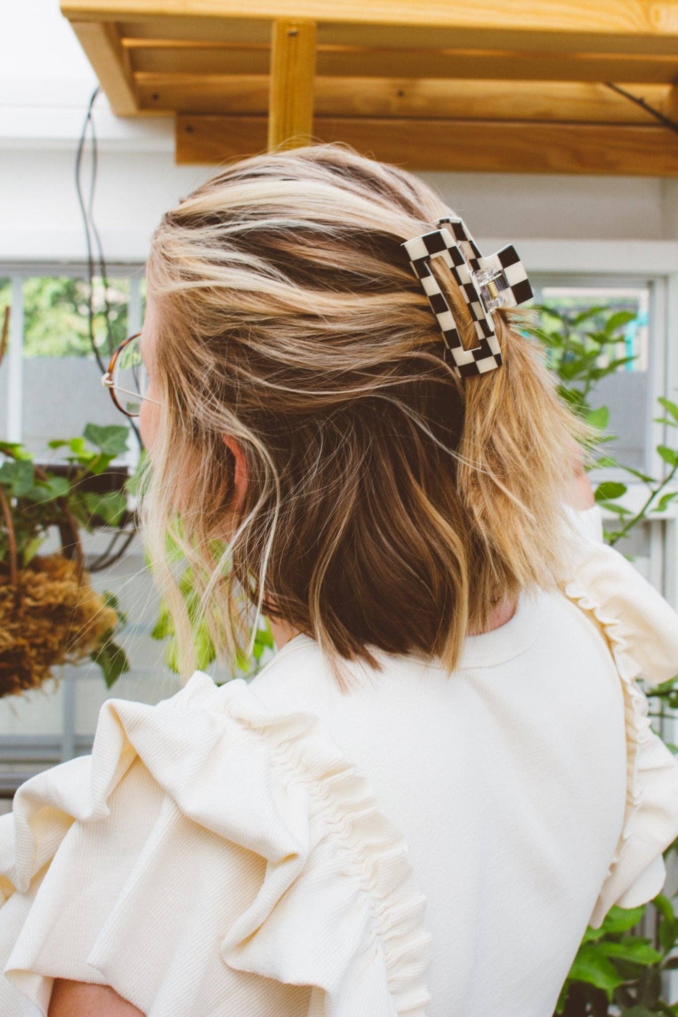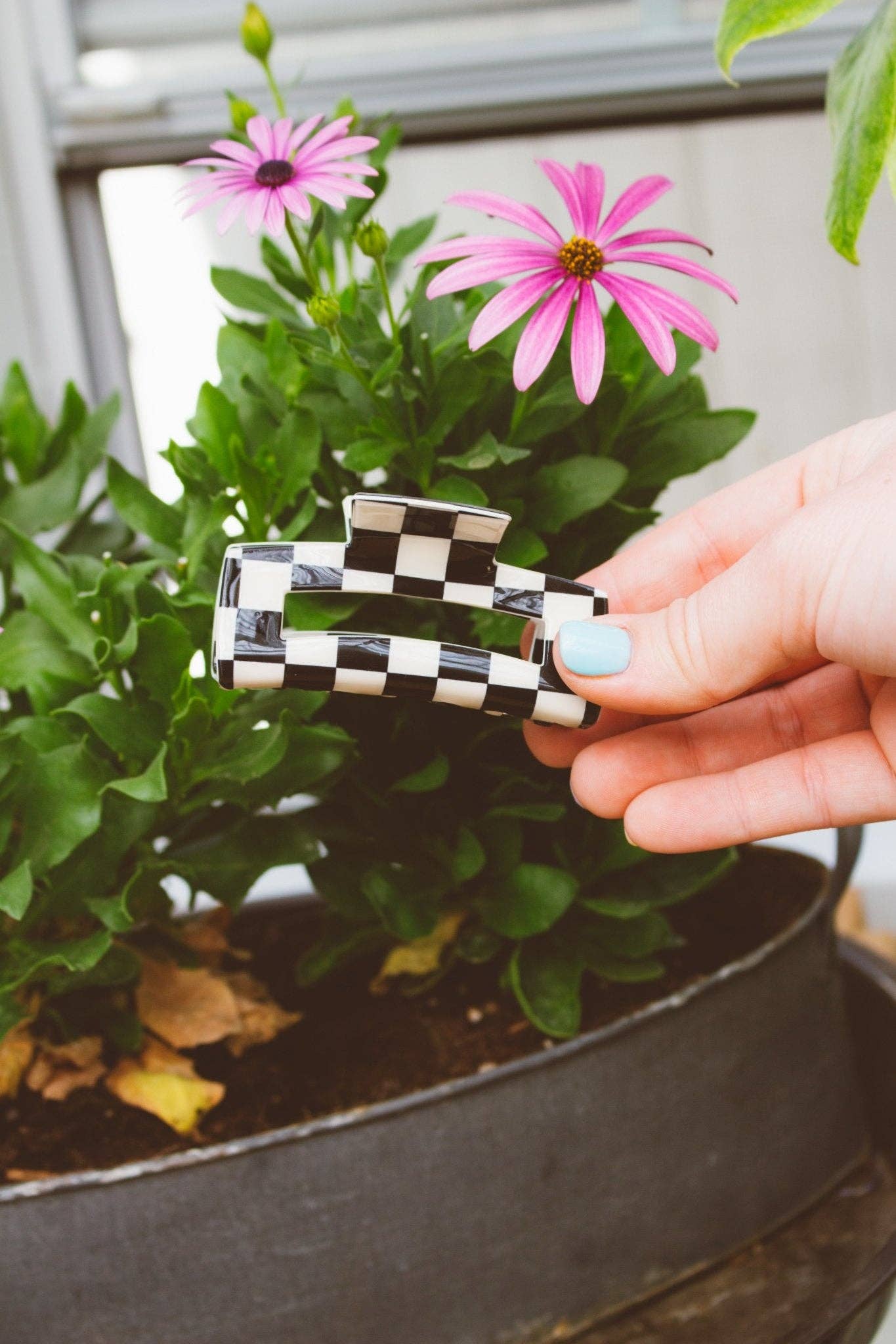 This classic claw clip shape will never be out of style and this super cute black & white checkered pattern is perfect for every hair color. This is a medium sized claw clip measuring about 3 inches long!