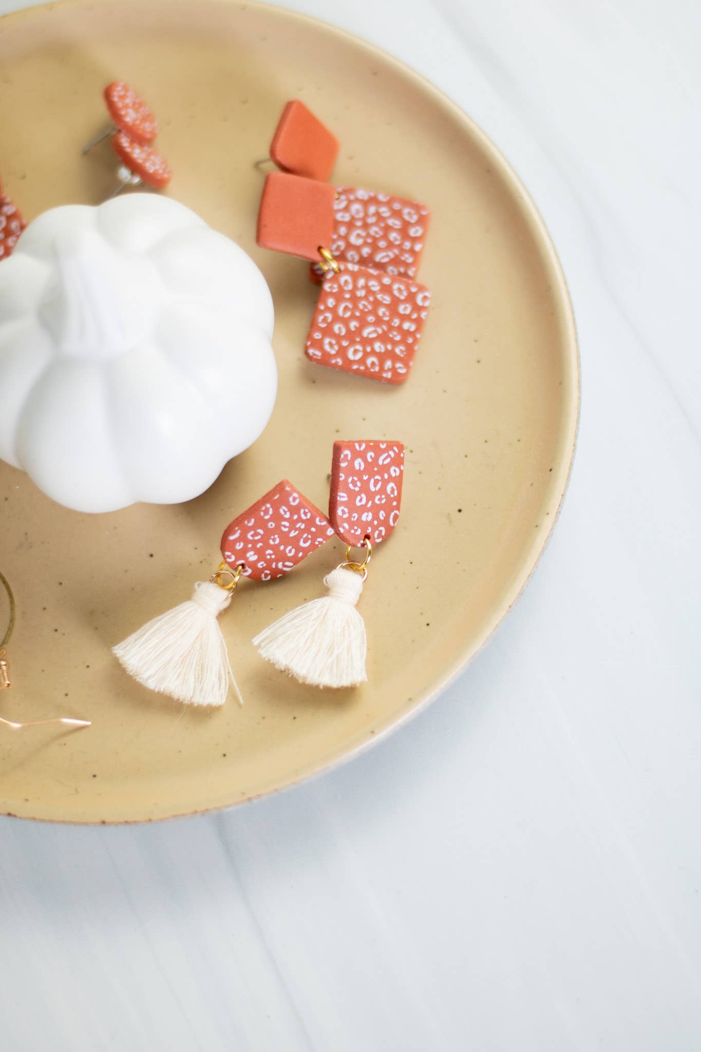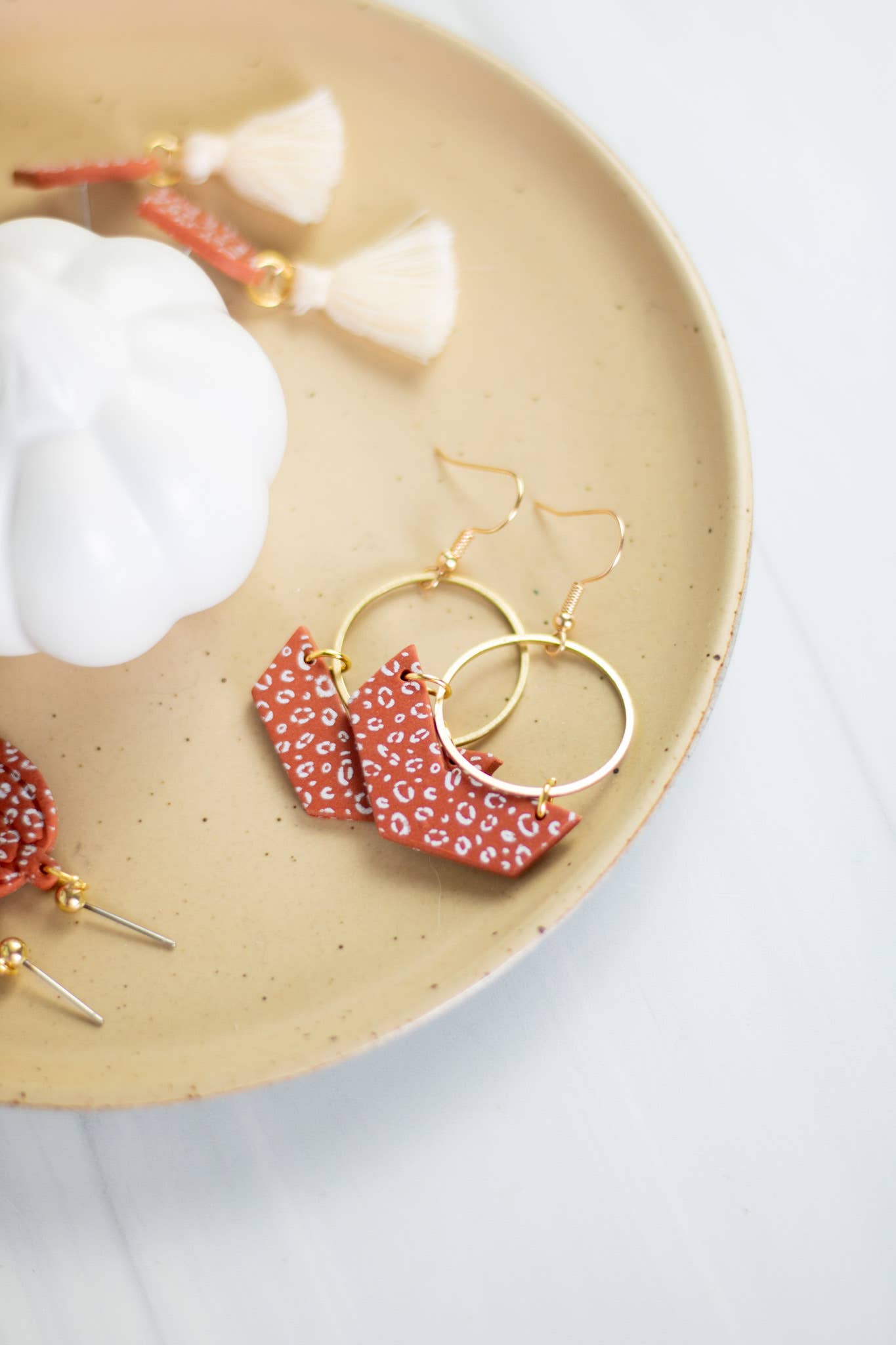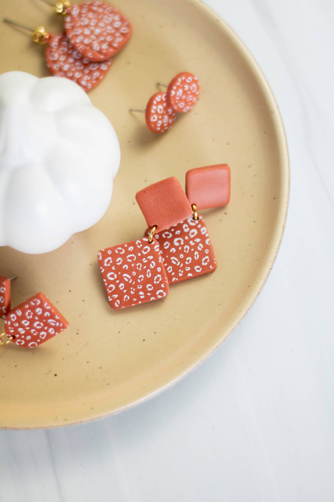 Embrace your wild side with our Cinnamon Cheetah Collection from EJ Clay Co. These dangle earrings, a part of our jewelry collection, showcase our love for unique design and exceptional quality. Inspired by the vibrant patterns of a cheetah and the warm hues of cinnamon, these earrings will surely make a bold statement. Crafted in Knoxville, TN, our earrings are lightweight and designed with sensitive ears in mind, using nickel and lead-free materials. Enjoy these uniquely crafted accessories that blend style, comfort, and quality seamlessly.