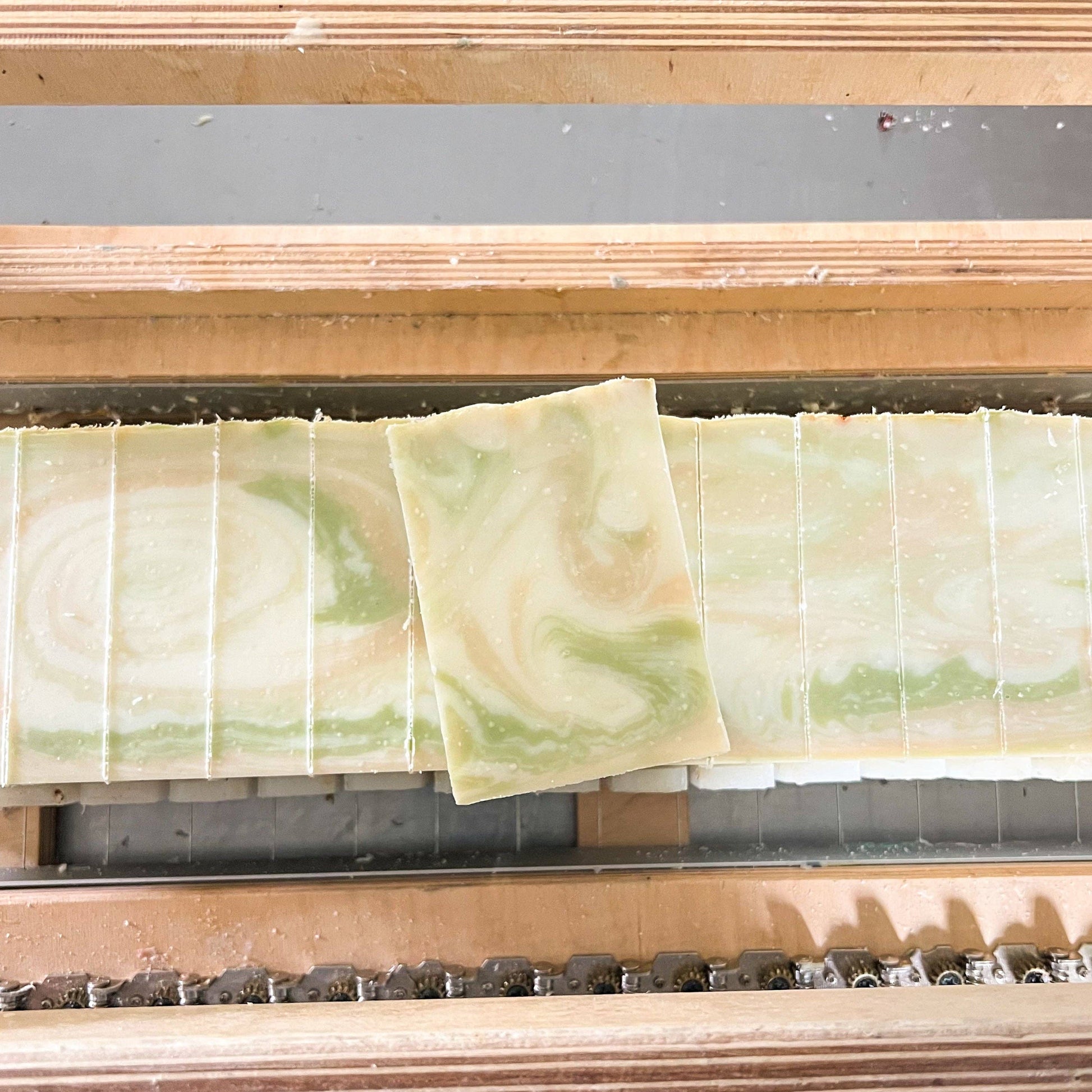 Ingredients: lard, goat milk, olive oil, rice bran oil, coconut oil, sodium hydroxide, water, castor oil, cocoa butter, shea butter, fragrance, mica