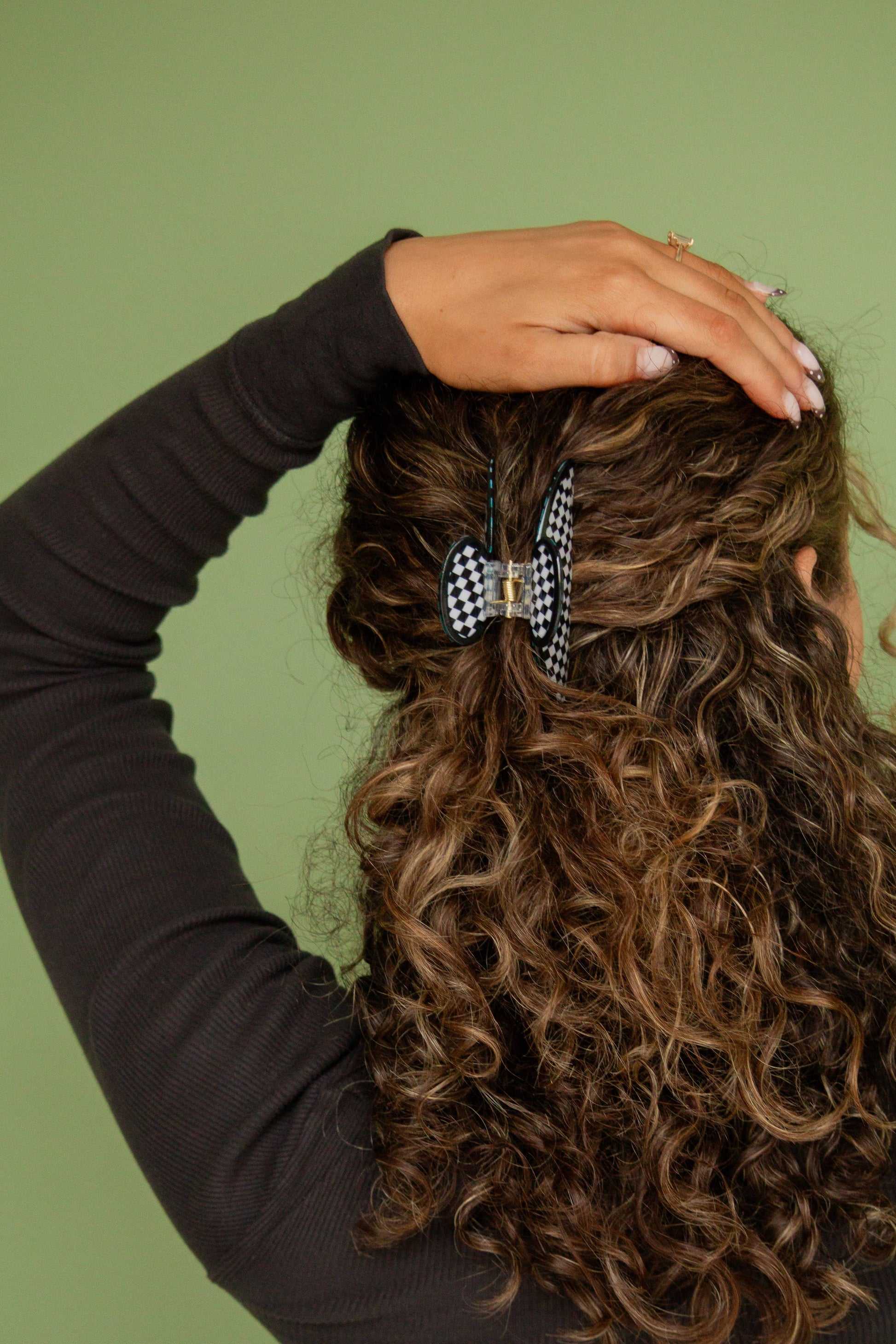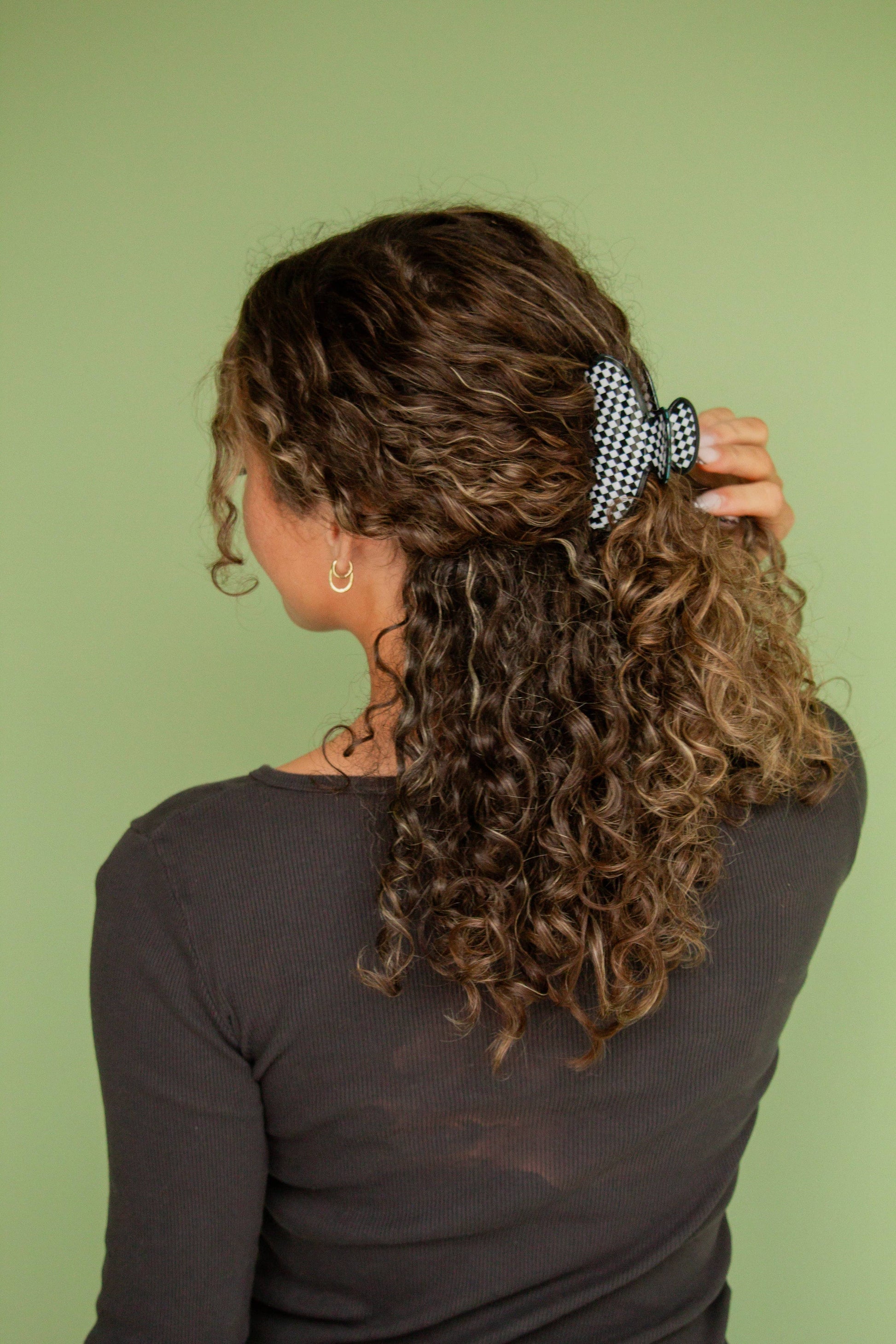 This adorable checkered claw clip is the perfect size, and is the absolute vibe for this time of year! The best way to elevate your updo for the day. This is a medium size claw clip measuring at 3.5 inches.